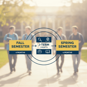 The 4-1-4 Calendar Some U.S. colleges offer the 4-1-4 academic calendar. This forms a part of their academic year. Let us understand what this means so that you can make an informed decision if you want to opt for this structure. The unique feature of